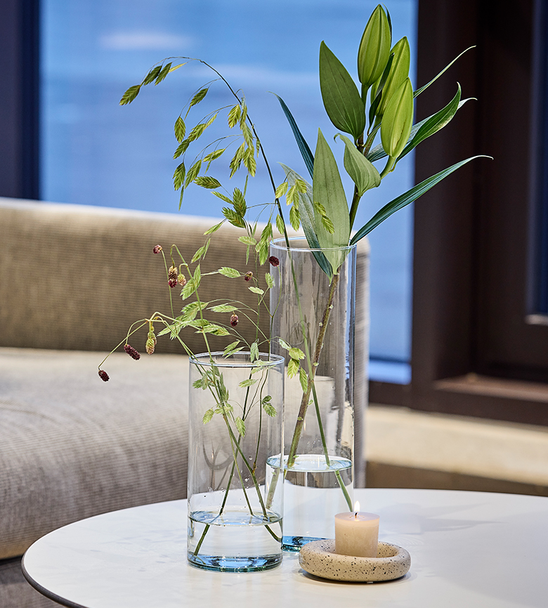 The Blossom Vase is available in two heights, 20 cm and 30 cm. Both sizes fit the OOhhx Blossom Ball perfectly and allow you to create a personal and distinctive look.